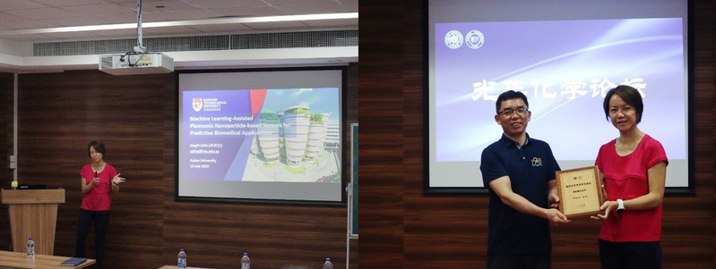 2023.07.13:邓勇辉教授邀请新加坡南洋理工大学化学、化学工程和生物技术学院的林歆怡教授作了题为“基于预测生物医学应用的机器学习辅助等离子体纳米粒子传感器”的学术报告,化学系师生50余人参加了报告会,并与林歆怡教授进行了热烈的讨论,现场学术氛围浓郁。