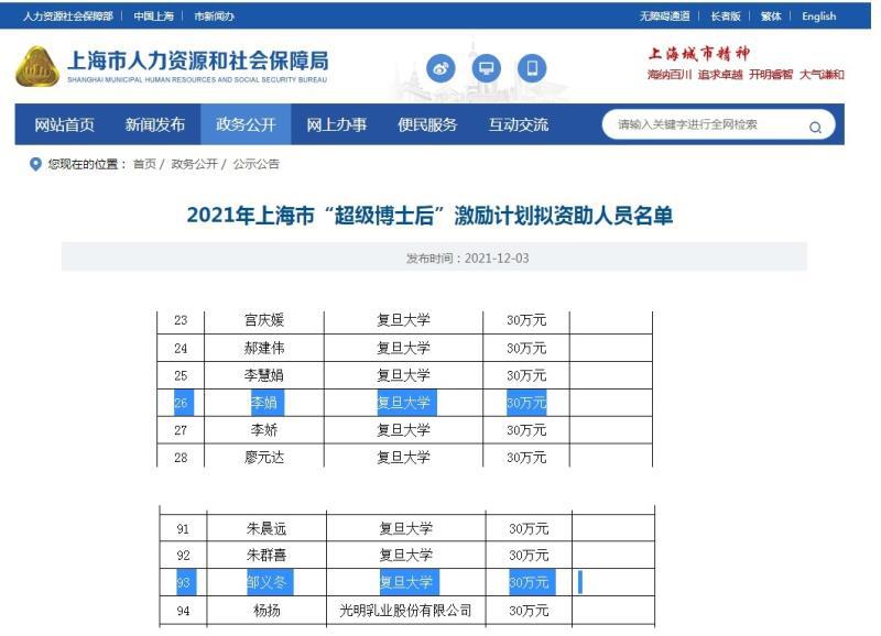 2021.12.03: 热烈祝贺课题组 邹义冬博士、李娟博士双双入选上海市超级博士后