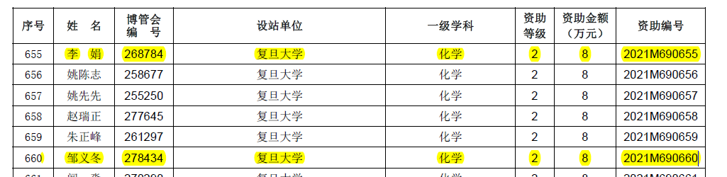 2021.08.11:热烈祝贺课题组李娟博士、邹义冬博士获得中国博士后科学基金第69 批面上资助!