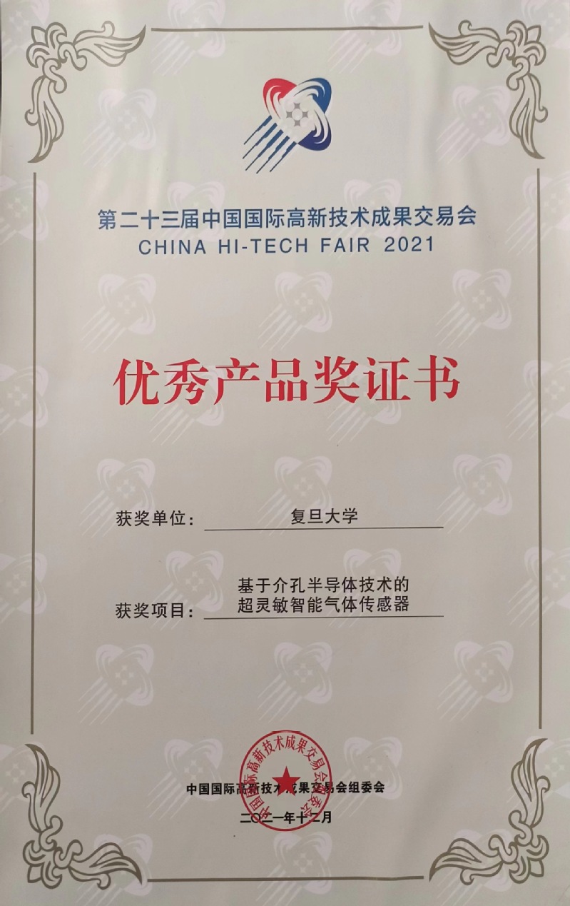 2021.12.16:热烈祝贺课题组开发的智能气体传感器获得China-HiTech Fair 2021 优秀产品奖