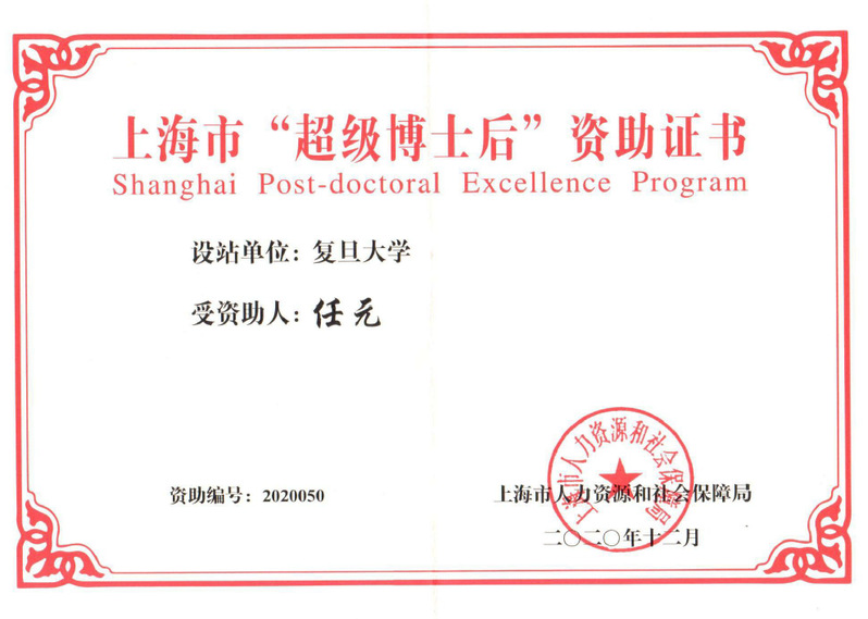 2022.12:热烈祝贺课题组 任元博士入选上海市 "超级博士后"。