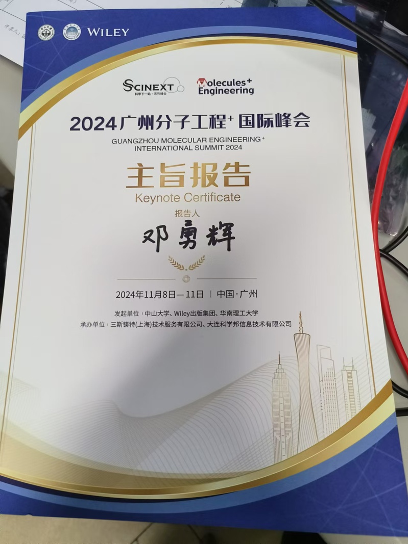 2024.11.10:邓勇辉教授应邀参加“2024广州分子工程+ 国际峰会”,并作了题为“介孔金属氧化物半导体气敏材料与器件”的主旨报告。