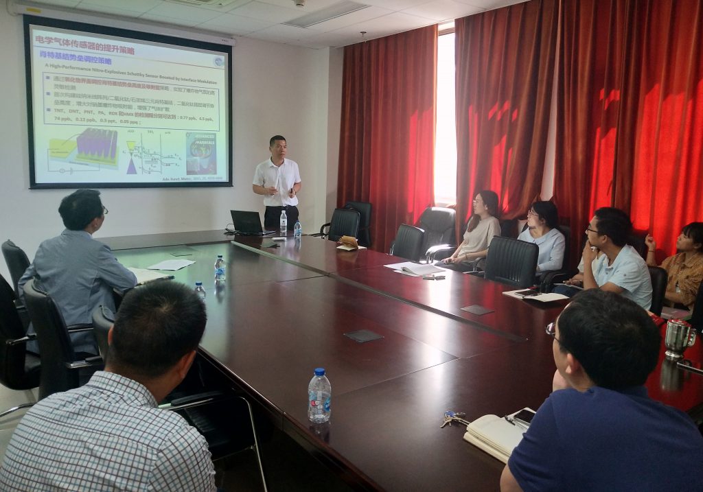 2019.09.24:中国科学院新疆理化技术研究所窦新存研究员应邓勇辉教授的邀请,来我系做报告。报告内容主要围绕“针对公共安全领域备受关注的痕量制式及非制式爆炸物检测开发的新型实用化传感检测器件”展开,详细介绍了新型气体传感材料及其传感机理和性能提升策略。