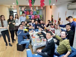 2025.09.10:佳节同庆,课题组师生如家人般欢聚。献上鲜花与祝福,欢声笑语间,尽显亦师亦友深厚情谊。